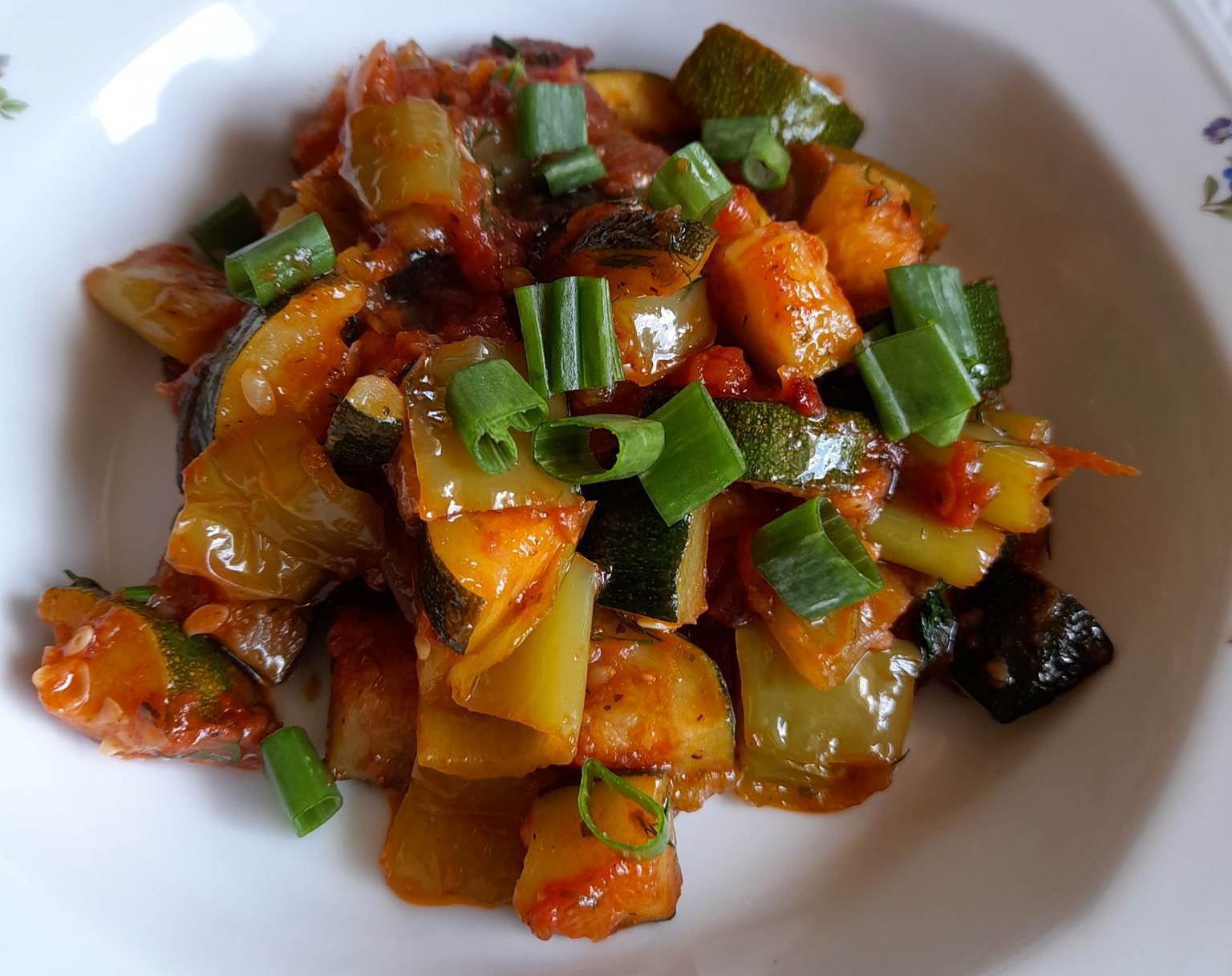 2 κολοκυθάκια, κομμένα σε λεπτές ροδέλες