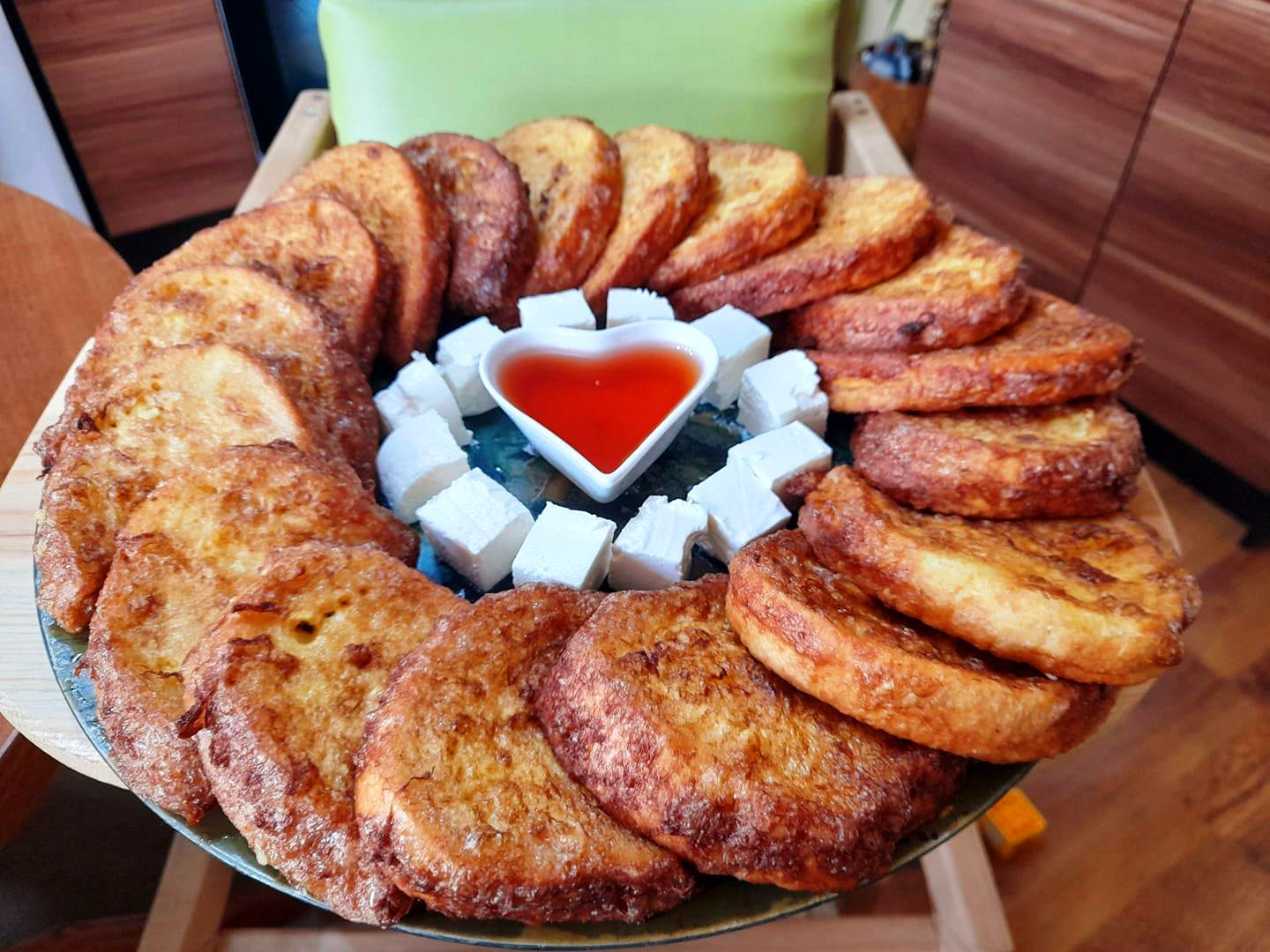 Αφαιρέστε τις έτοιμες φέτες σε χαρτί κουζίνας. Μπορείτε να το φάτε με τυρί φέτα και κάποια σάλτσα που σας αρέσει
