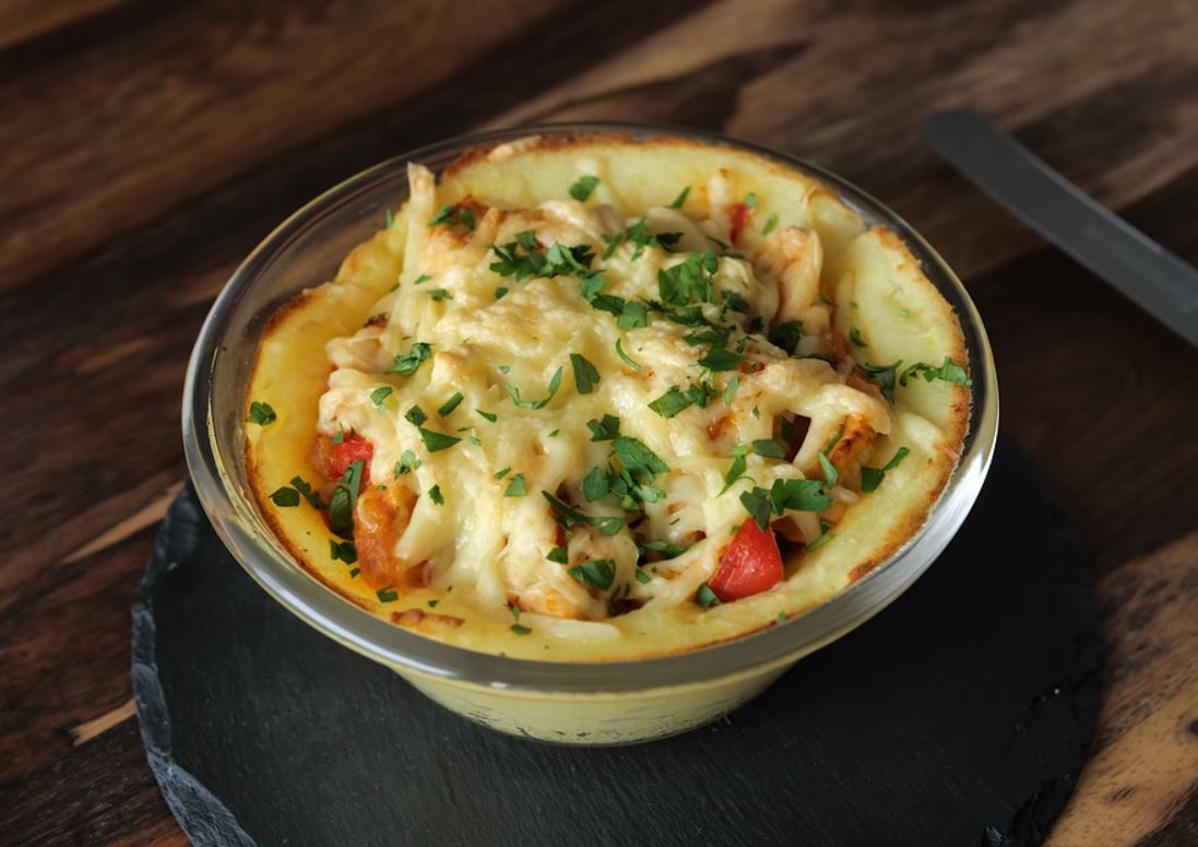 Τηγανιά κοτόπουλο με πουρέ σε φορμάκια