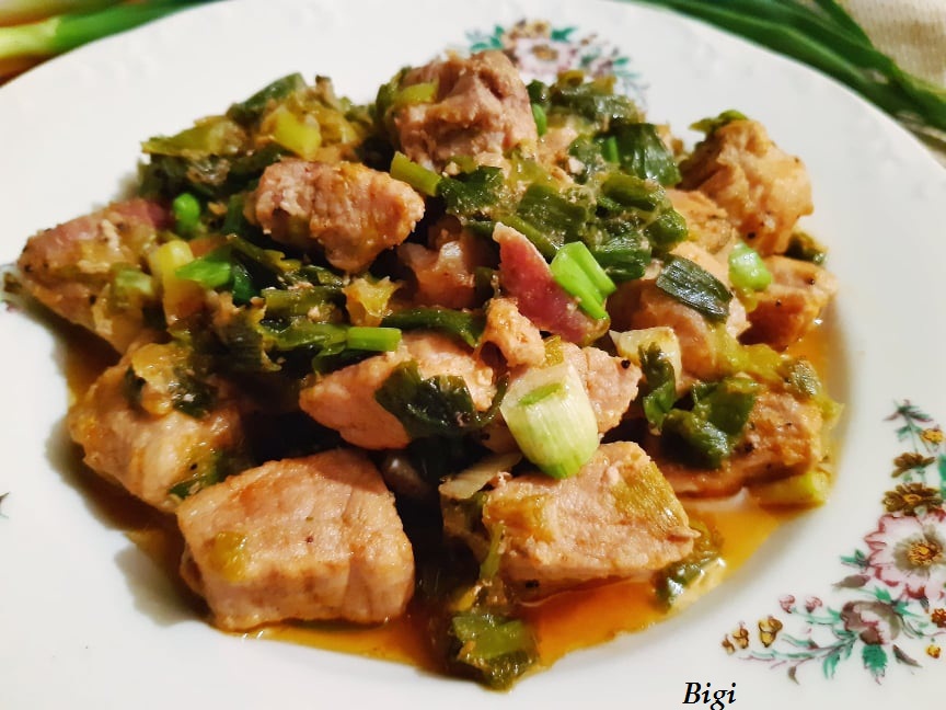Τηγανιά με πράσινο κρεμμυδάκι και σκόρδο