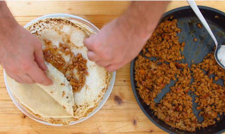 Τηγανιτές γεμιστές κρέπες με κιμά