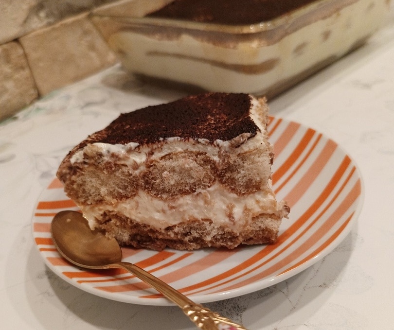 Το Τιραμισού είναι έτοιμο να σερβιριστεί! Κόψτε το σε κομμάτια και απολαύστε το ντελικάτο, αφράτο επιδόρπιο που θα κερδίσει τις καρδιές όλων!