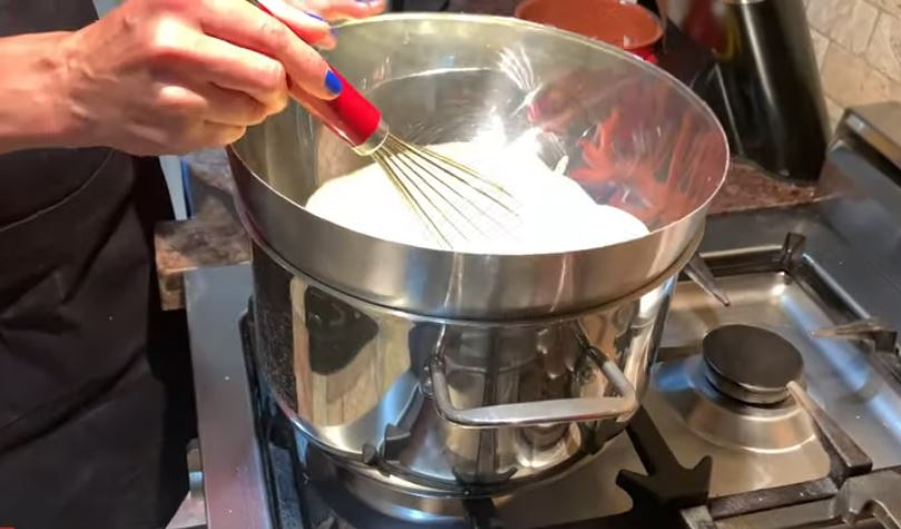 Βάλτε το μπολ πάνω απ την κατσαρόλα με το νερό που βράζει και συνεχίστε το χτύπημα για 10 λεπτά.