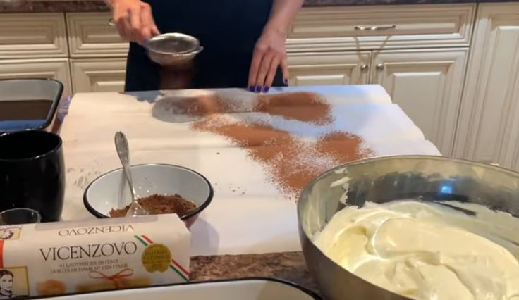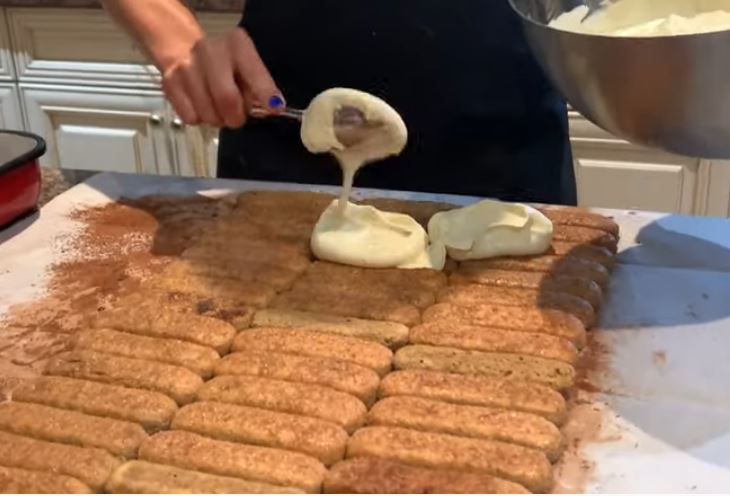 Πάρτε 45 μπισκότα σαβαγιαρ βουτήξτε τα σε 1 & 1/2 φλιτζάνι κρύο καφέ με 1/2 φλιτζάνι Amaretto, ή οποιοδήποτε λικέρ της επιλογής σας.