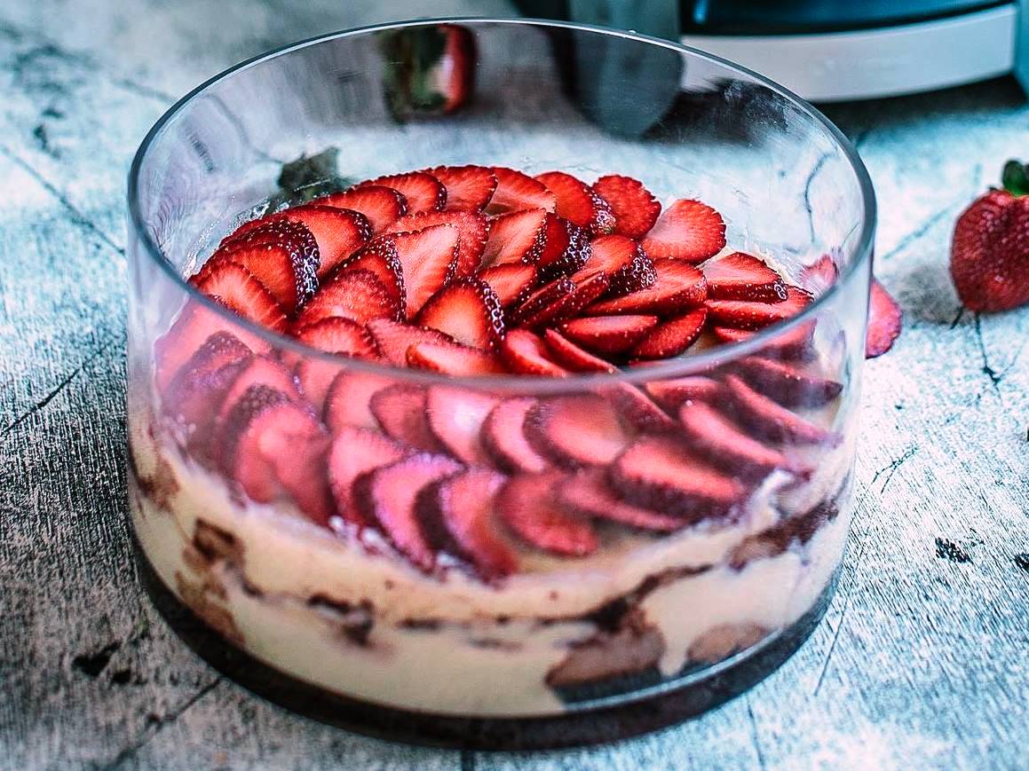 Πριν το σερβίρετε γαρνίρετε με περισσότερες φράουλες.