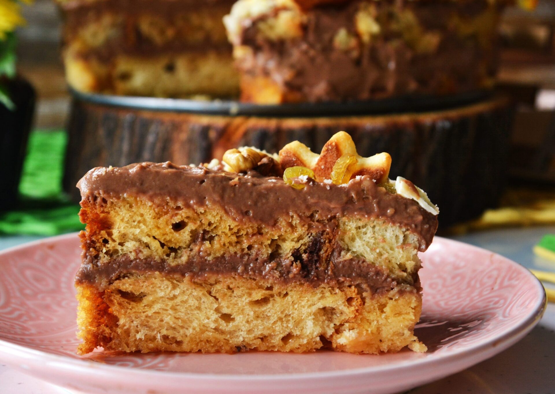 Στο κάτω μέρος τακτοποιούμε φέτες από το τσουρέκι τις σιροπιάζουμε, βάζουμε την μιση κρέμα.