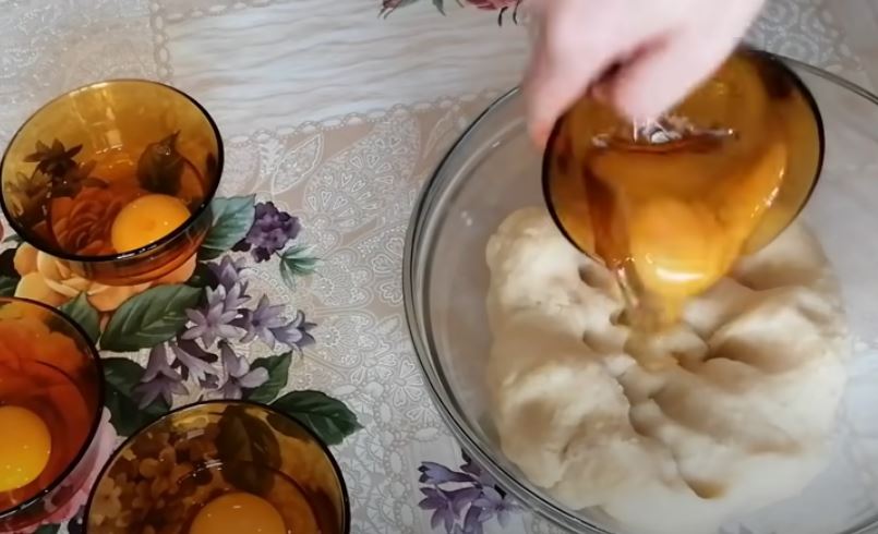 Αυτό θα μειώσει επίσης τη θερμοκρασία της ζύμης και θα μπορείτε να προσθέσετε τα αυγά. Όταν η ζύμη δεν καίει όταν την αγγίξεις, αρχίστε να προσθέτετε τα αυγά ένα προς ένα, ανακατεύοντας κάθε ένα μέχρι να απορροφηθεί από τη ζύμη. Στην αρχή, όταν προσθέτετε ένα αυγό και ανακατεύετε, θα παρατηρήσετε ότι η ζύμη «πιτσιλίζει» και γίνεται «γλοιώδης».
