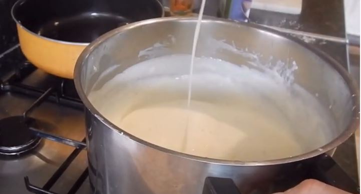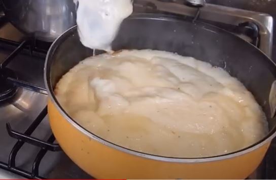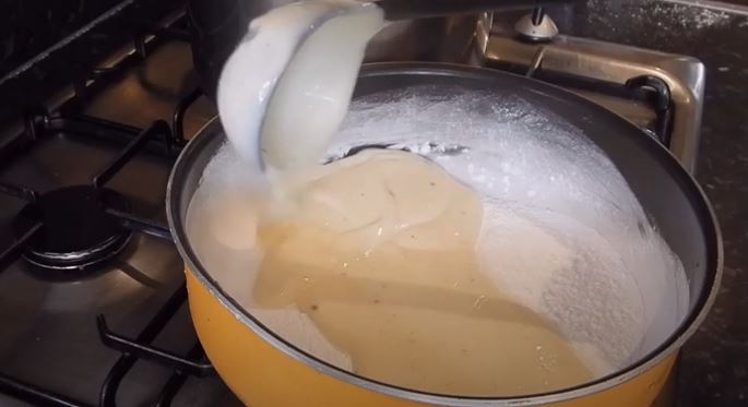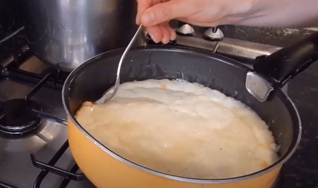 Συνεχίζουμε και ρίχνουμε την υπόλοιπη κρέμα και να είστε προσεχτικοί μην κάψετε την βάση.