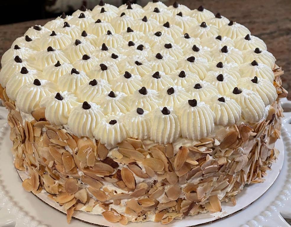 Τούρτα Αμυγδάλου με βελουδινη κρέμα και κοματάκια σοκολάτας