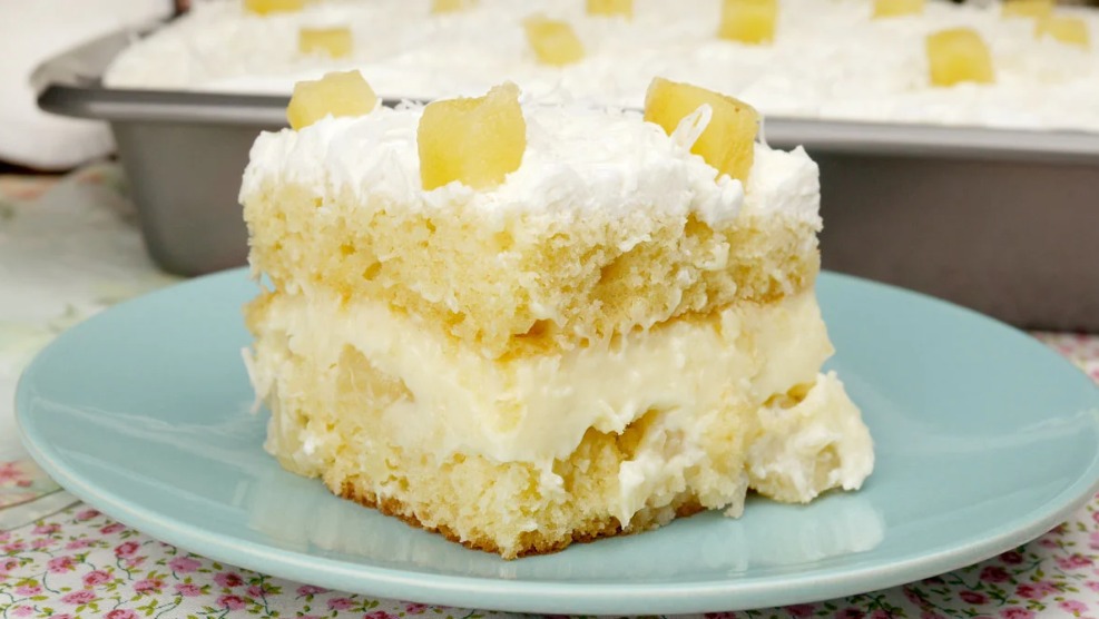 Τοποθετήστε από πάνω τον ψιλοκομμένο ανανά (κρατήστε μερικά κομμάτια για διακόσμηση)