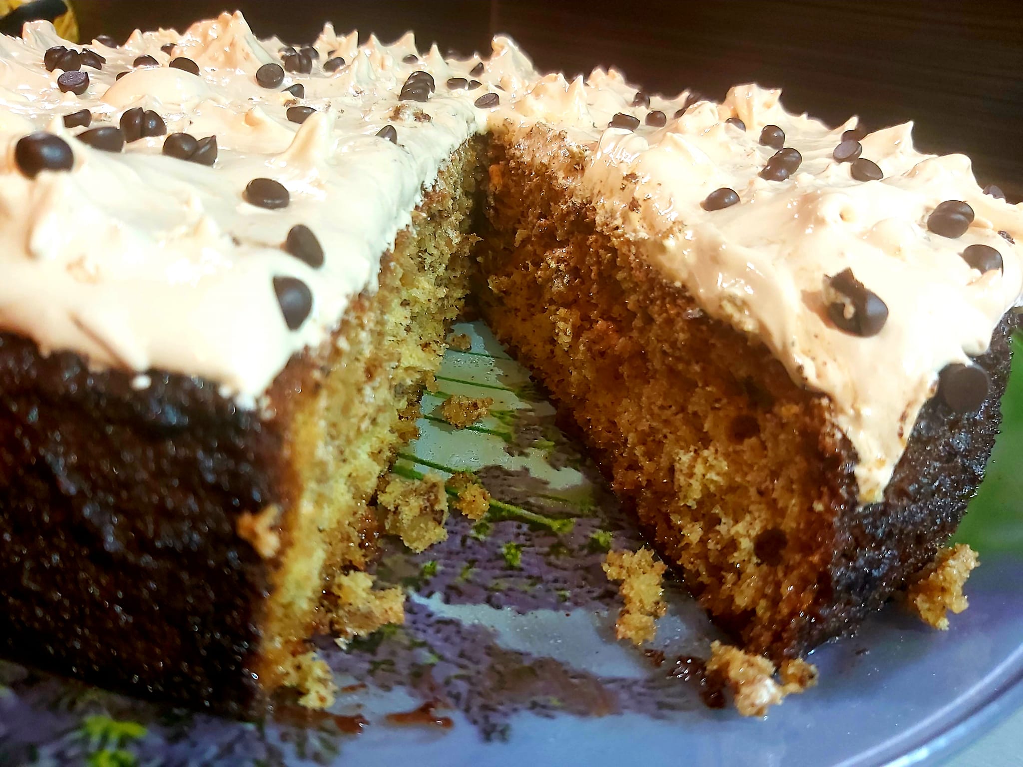 Ψήνω το σπιτικό κέικ σε προθερμασμένο φούρνο στους 180°C. Περίπου στο 15ο λεπτό του ψησίματος, βάζω αλουμινόχαρτο για να μην ψηθεί πολύ το κέικ από πάνω. Ψήνω για περίπου 40 λεπτά. Ελέγχω αν έχει ψηθεί με ένα στεγνό ξυλάκι. Μόλις το βγάλω από τον φούρνο, το σκεπάζω με μια καθαρή πετσέτα και το αφήνω να κρυώσει. Στη συνέχεια, το κόβω σε κομμάτια.