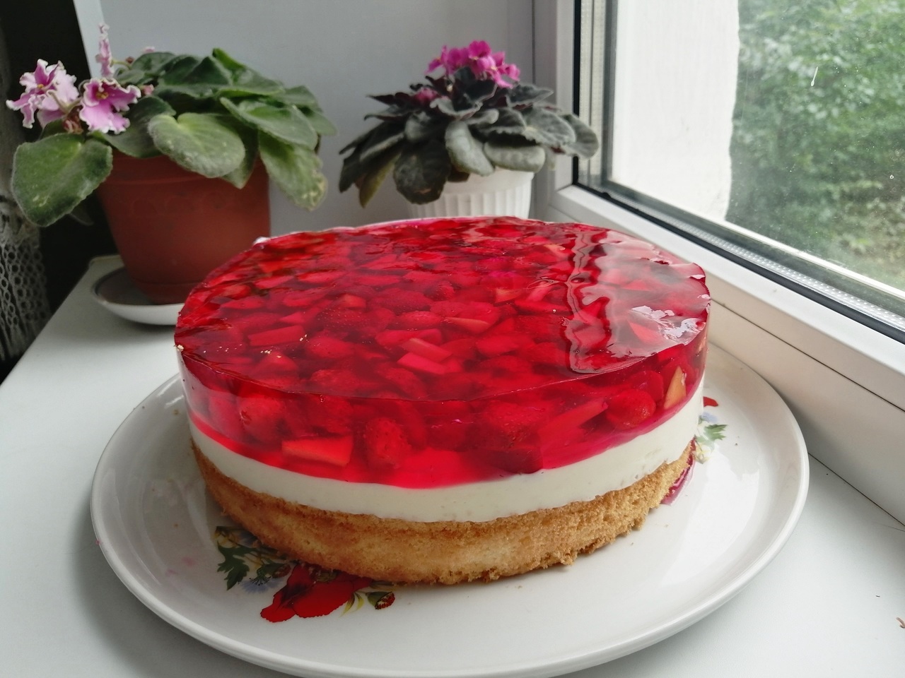 Βάζω την τούρτα στο ψυγείο για τουλάχιστον 3-4 ώρες, ή καλύτερα όλη τη νύχτα, για να παγώσει καλά το ζελέ.