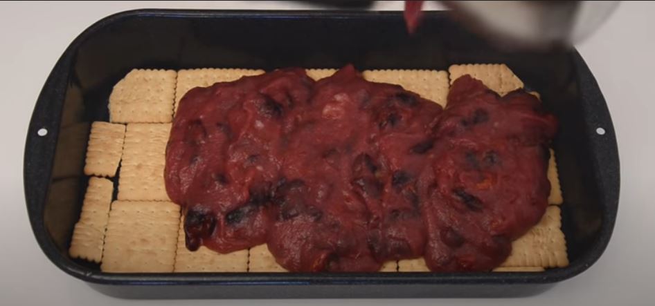 4. Τοποθετήστε τα μπισκότα στο κάτω μέρος της φόρμας (διαστάσεις 23 x 32 cm).