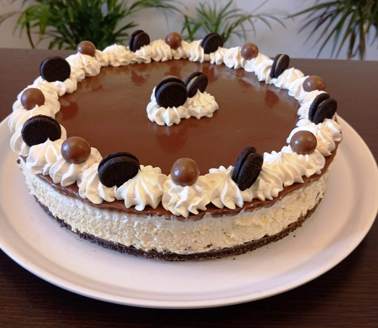 Η Τούρτα Μπισκότου oreo συνδυάζει την τραγανή βάση μπισκότου με κρέμα ζαχαροπλαστικής, σαντιγί και πλούσια γκανάς σοκολάτας, δημιουργώντας ένα εντυπωσιακό και γευστικό γλυκό.