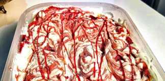 Βάζουμε το παγωτό στην κατάψυξη για περίπου 5 με 7 ώρες.