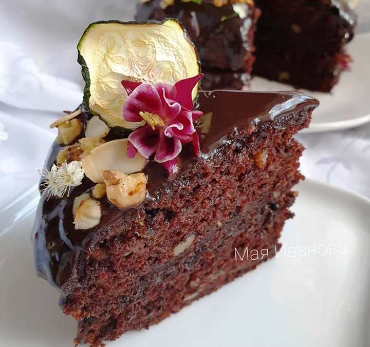 Βάζουμε την μία βάση(ψύχεται) σε ένα πιάτο και ρίχνουμε τη σοκολάτα πάνω του. Τοποθετούμε την άλλη απο πάνω. Την καλύπτουμε επίσης με σοκολατα. Διακοσμήστε με καβουρδισμένα αμύγδαλα σε φέτες, καρύδια και φλύδες κολοκυθάκια.