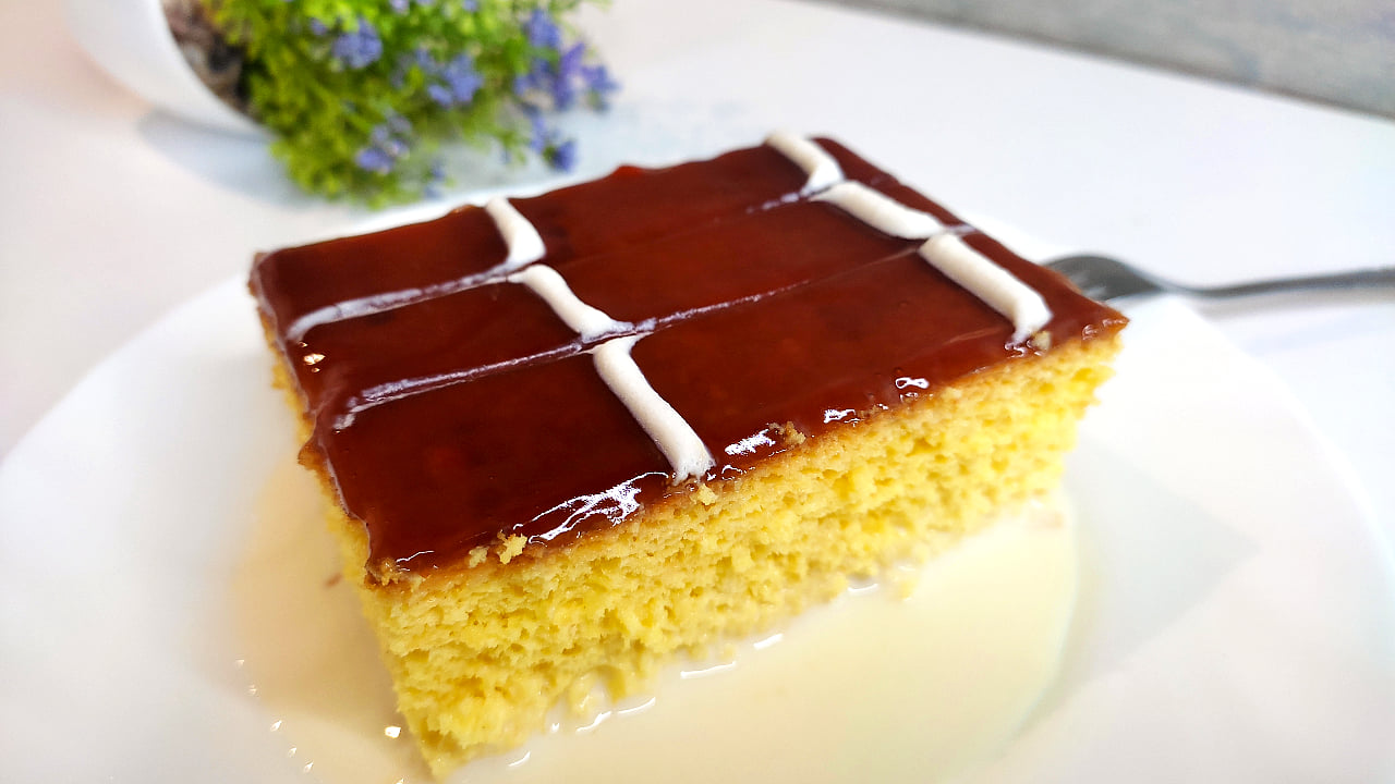 Ξεκινάμε λοιπόν με μία κουτάλα και εμποτίζουμε το κέικ μ όλο αυτό το μείγμα.