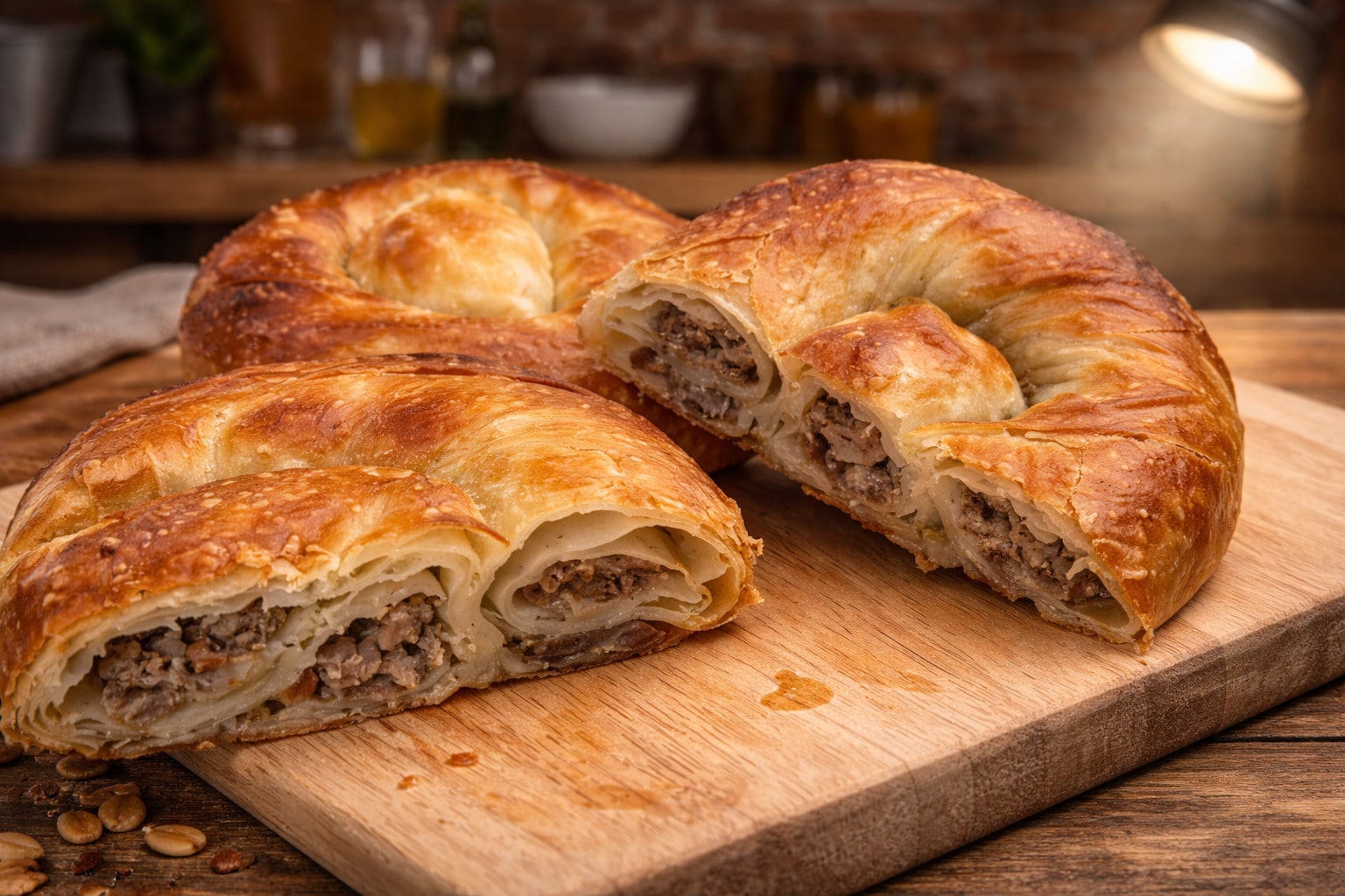 Πολλές φορές οι κρεατόπιτες βγαίνουν στεγνές ή το φύλλο πανιάζει από τα υγρά του κρέατος, όμως το πρόβλημα αυτό λύνεται με το σωστό τύλιγμα σε σχήμα σωλήνα και το περιχύσιμο με ένα μείγμα από αυγά, κρέμα και ανθρακούχο νερό. Αυτό το Μπουρέκι είναι η ιδανική λύση για ένα κυριακάτικο τραπέζι ή ένα χορταστικό γεύμα που απαιτεί ελάχιστο κόπο, προσφέροντας μια πανδαισία υφών που θα ενθουσιάσει ακόμα και τους πιο απαιτητικούς.
