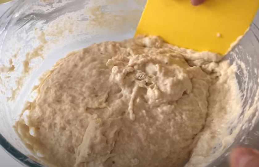 Σε ένα μπολ ρίχνουμε την μαγιά, ζάχαρη, νερό, ανακατεύουμε μετά ρίχνουμε και το γάλα και 2 κουταλιές αλεύρι και αναμιγνύουμε και αφήνουμε στην άκρη.