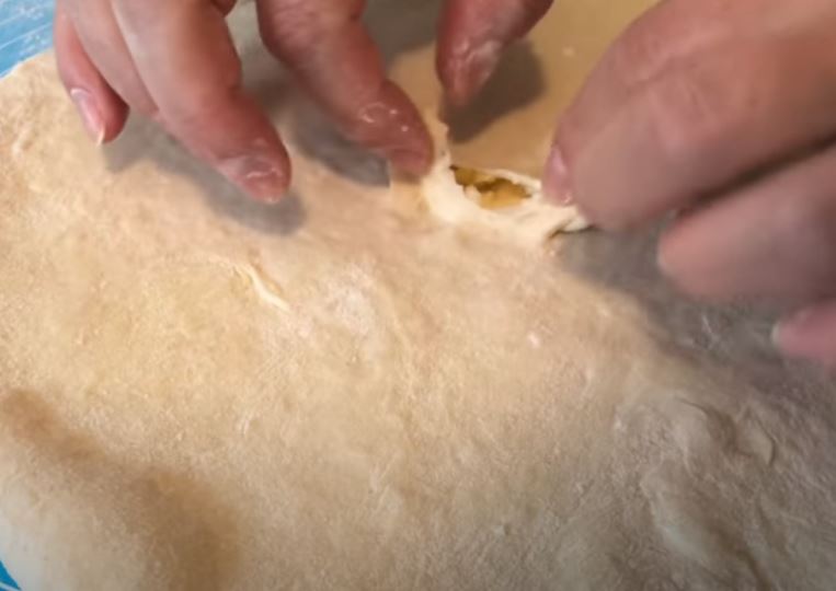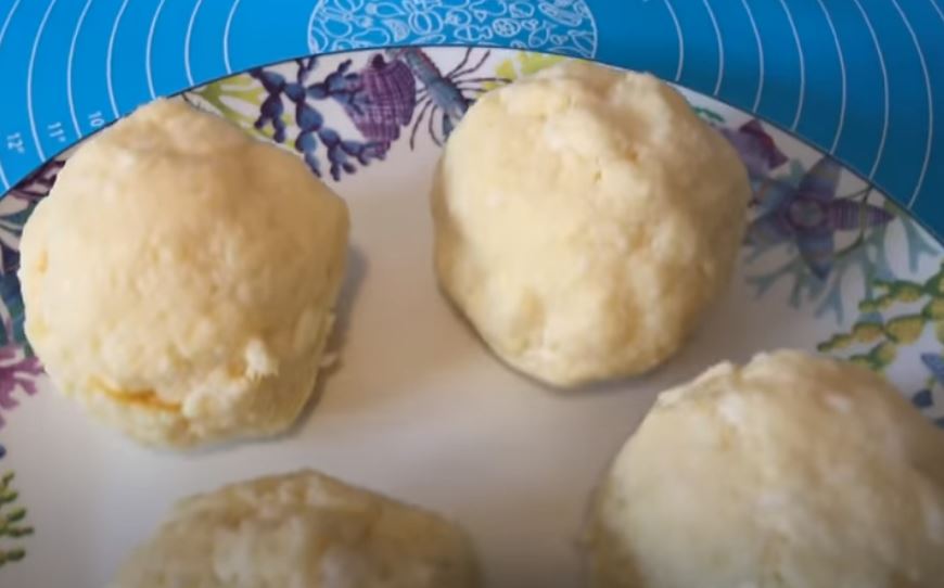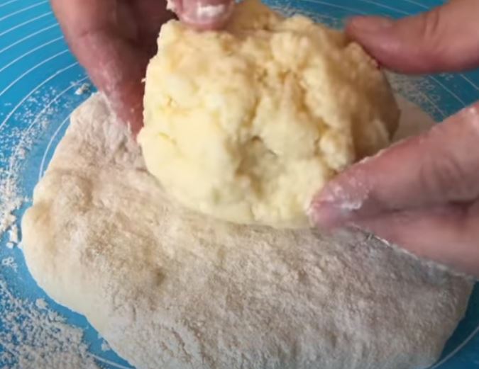 Παίρνουμε μία – μία την ζύμη ανοίγουμε λίγο με το χέρι και κλείνουμε μέσα κάθε μπάλα τυριού.