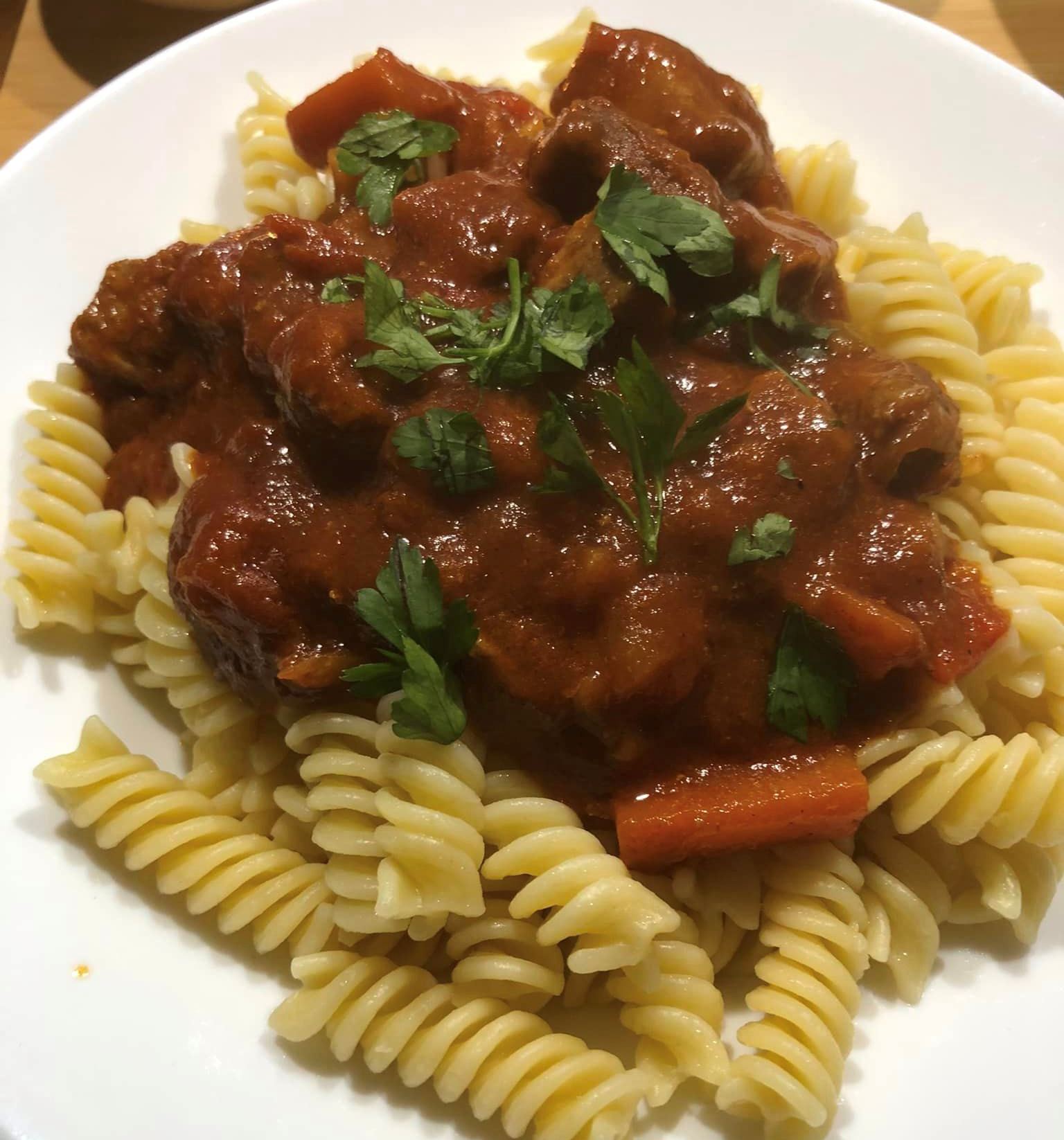 Γεια από την κουζίνα της μαμάς. Ελπίζω να είστε όλοι καλά. Είχαμε σήμερα το ελληνικό μοσχάρι Κοκκινιστό – σερβίρεται με ζυμαρικά