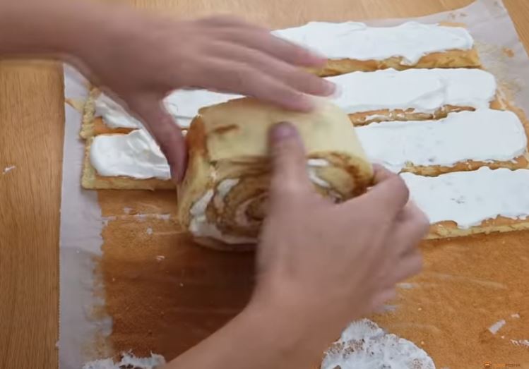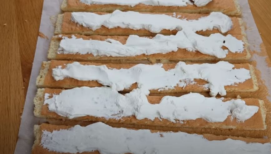 Σε κάθε λωρίδα απλώνουμε την σαντιγί.