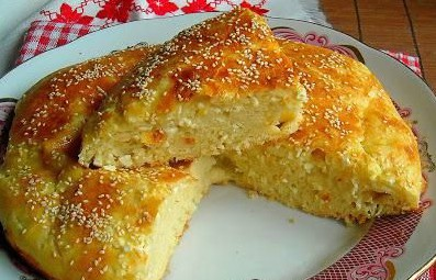 Στη συνέχεια, προσθέστε γιαούρτι και λάδι και όλα τα ξηρά συστατικά: καλαμποκαλευρο,