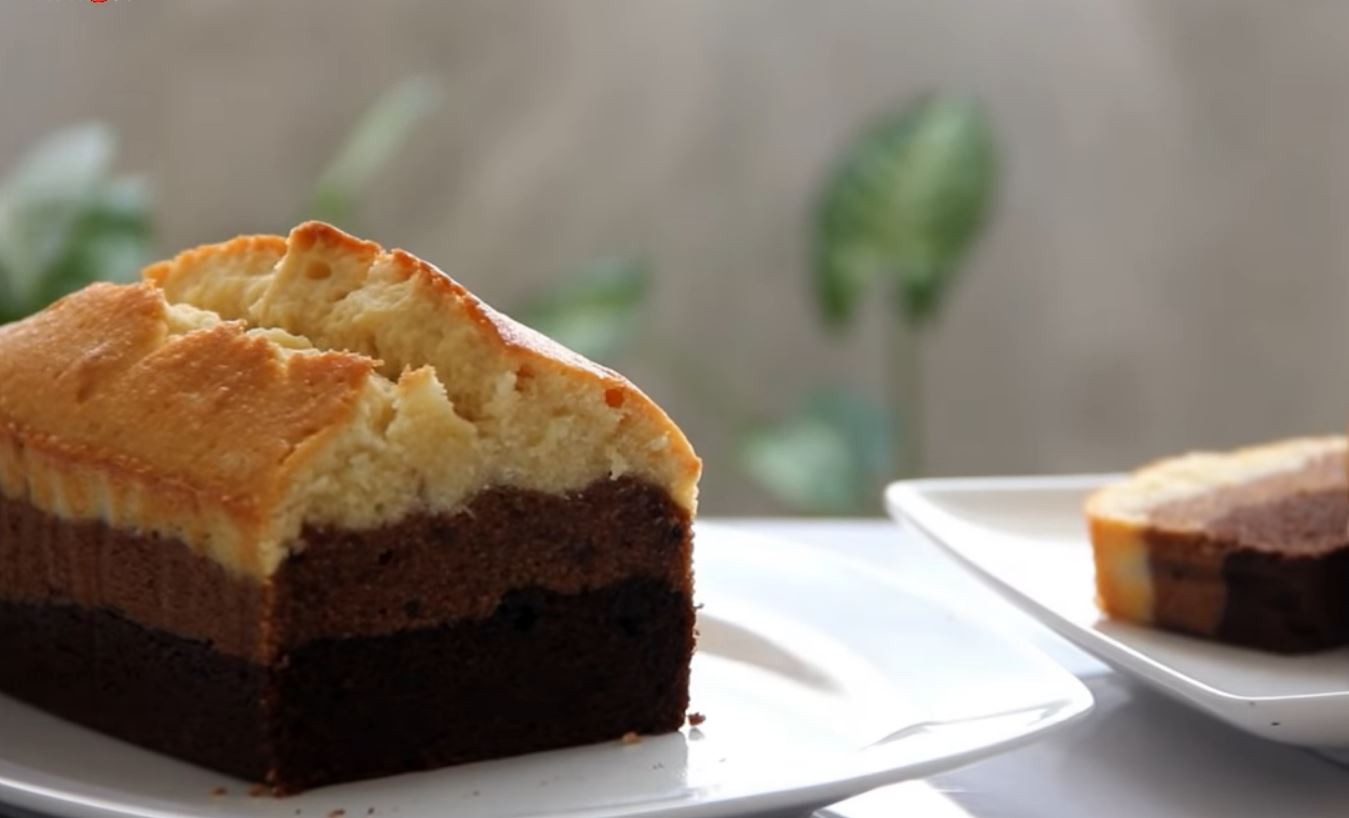 Στο ιδιο μπολ της σοκολάτας ρίξτε το άλλο 1/3 του μείγματος του μπολ και 1 κσ κακάο και ανακατέψτε.