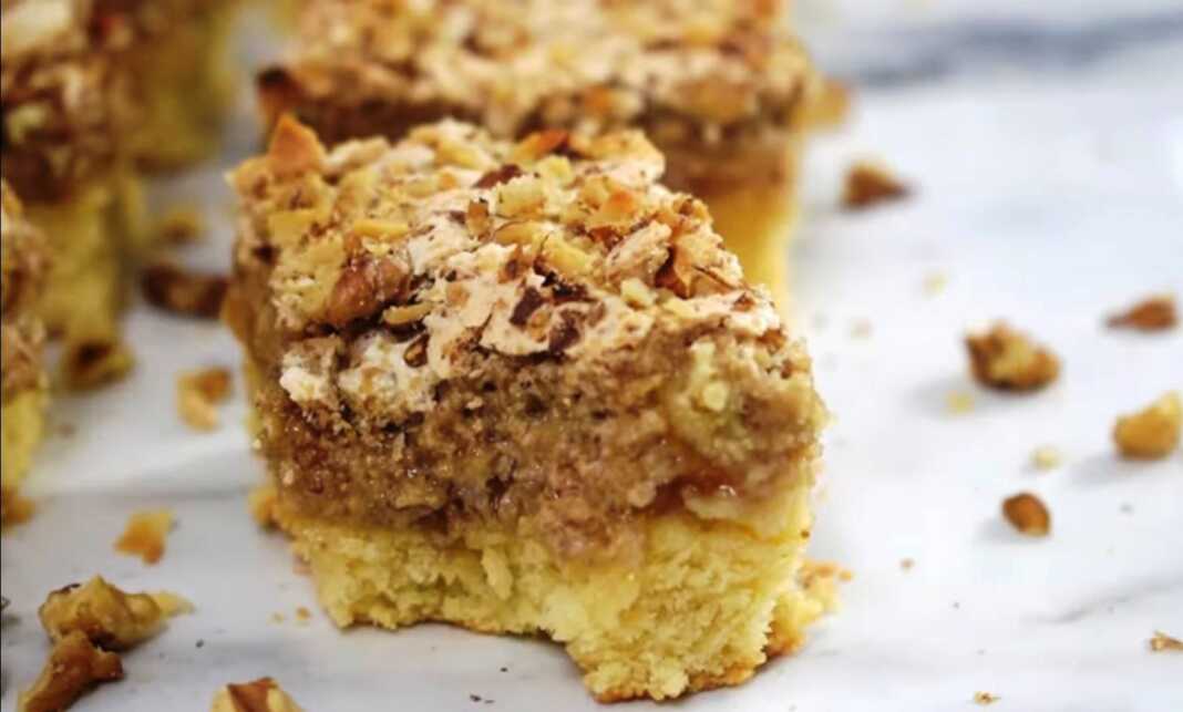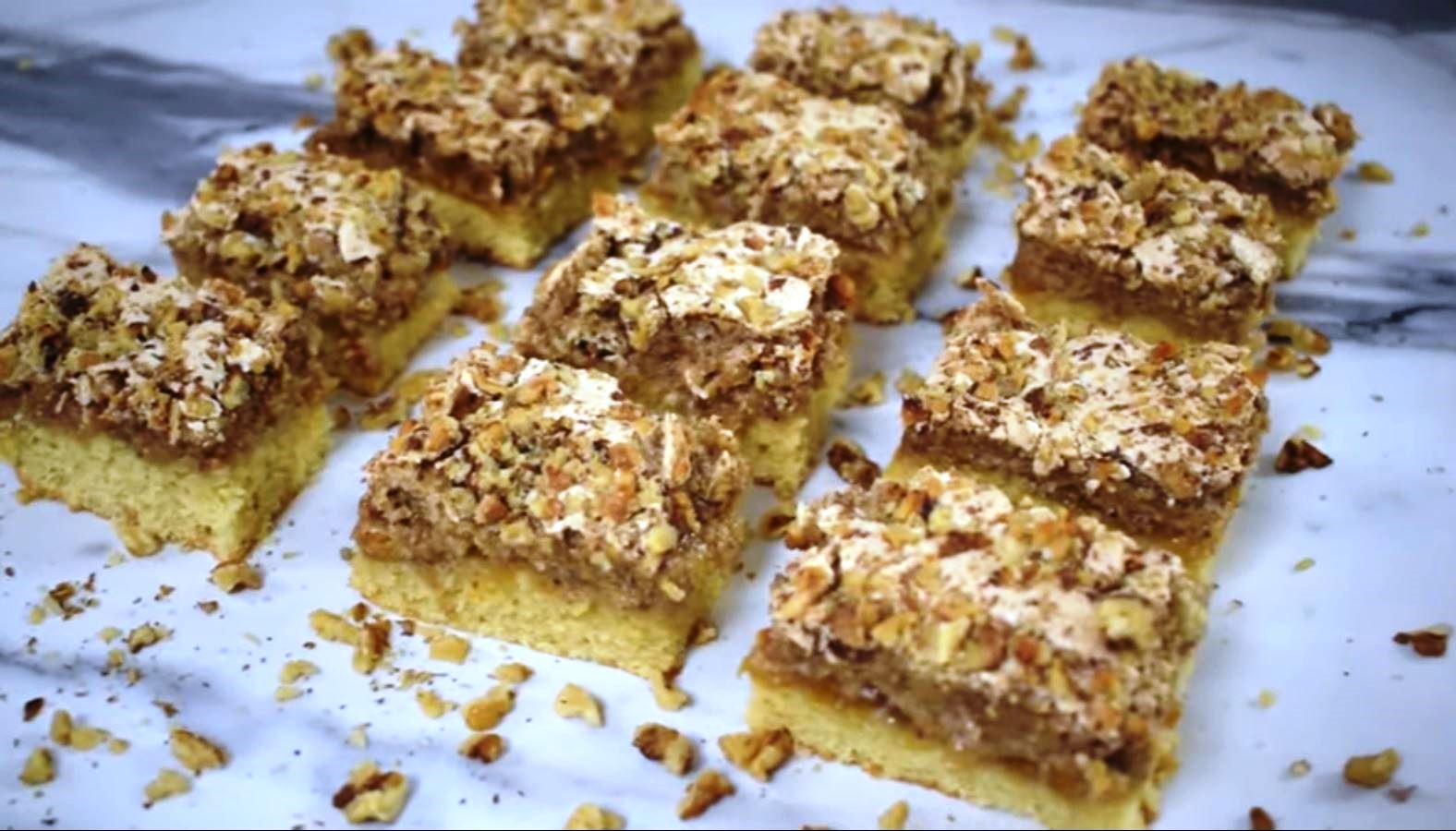 Η βάση έχει μια ήπια γεύση λεμονιού και σε συνδυασμό με μαρμελάδα βερίκοκου και μαρέγκα με καρύδια, αυτό το κέικ είναι ένα από τα καλύτερα κέικ ποτέ.