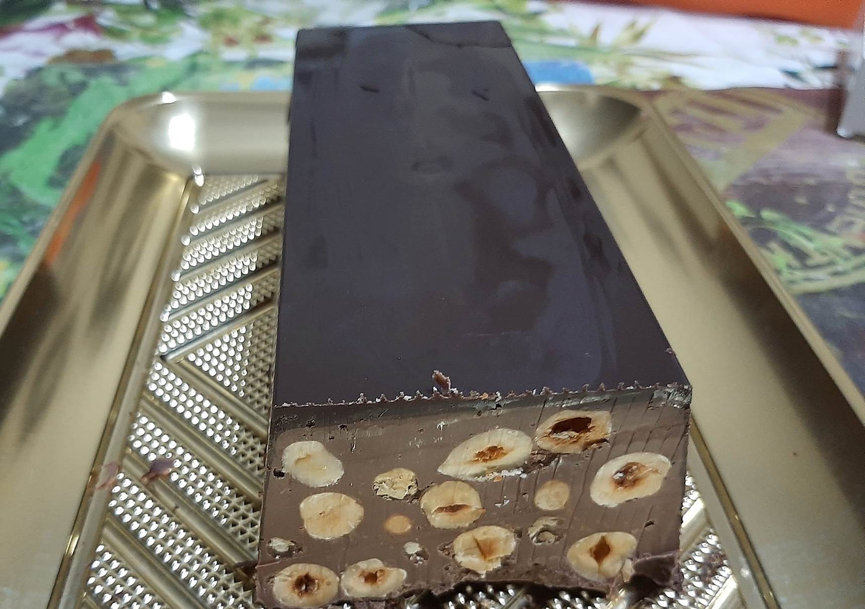Όταν το μαντολάτο στερεοποιηθεί, μπορείτε να προσθέσετε την τελευταία στρώση. Λιώστε το τελευταίο μπολ μαύρης σοκολάτας σε μπεν μαρί και μοιράστε το γρήγορα πάνω στο μαντολάτο