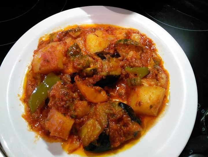 Βαζω σε ενα ταψι 35×30 μια στρωση απ’ολα τα τηγανιτα αφου πρώτα τα εχω αλατισει ολα καλα(μην φοβηθειτε,το χρειαζονται),επειτα την μιση σαλτσα να παει παντου,λιγη τριμμενη φετα και απο πανω ακομα μια σειρα απο τα υπολοιπα μισα..βαζω λαδοχαρτο και αλουμινόχαρτο απο πάνω και ψηνω στους 200 βαθμούς για τρια τεταρτα και αλλο ενα τεταρτο ξεσκέπαστο…θελουμε να μεινει λιγο ζουμακι γιατι κρυωνοντας το φαγητο θα σωθει!