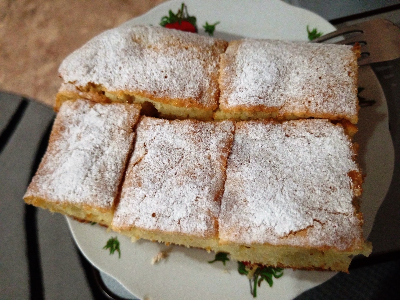 Ψύξτε το έτοιμο κέικ και πασπαλίστε το με ζάχαρη άχνη.
