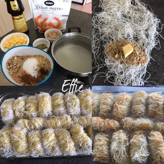 Διπλώνουμε όχι σφιχτά και τα βάζουμε σε βουτυρωμένο ταψι κοντά-κοντά οταν τελειώσουν λιώνουμε το βούτυρο και περιχαμε τα κανταΐφια μας.