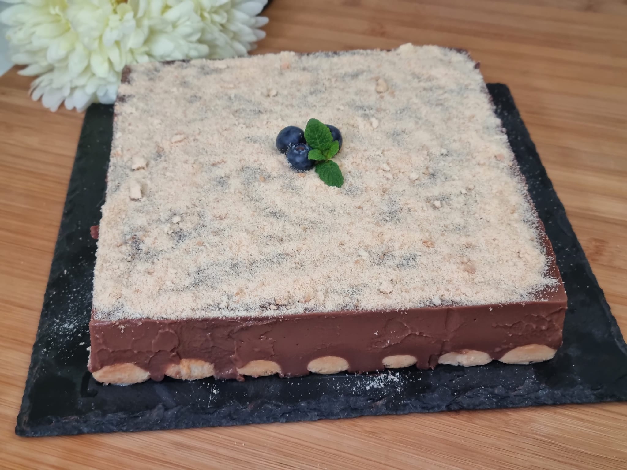 και βάζουμε στο ψυγείο για τρεις ώρες Το χρόνο αυτό τρίβουμε 4-5 σαβαγιάρ στο μπλέντερ να κάνουμε σκόνη βγάζουμε το γλυκό από το