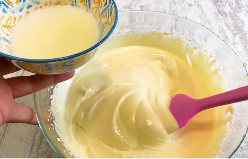 χτυπήστε 1-2 λεπτά. Προσθέστε 200 ml γάλακτος και ανακατέψτε .