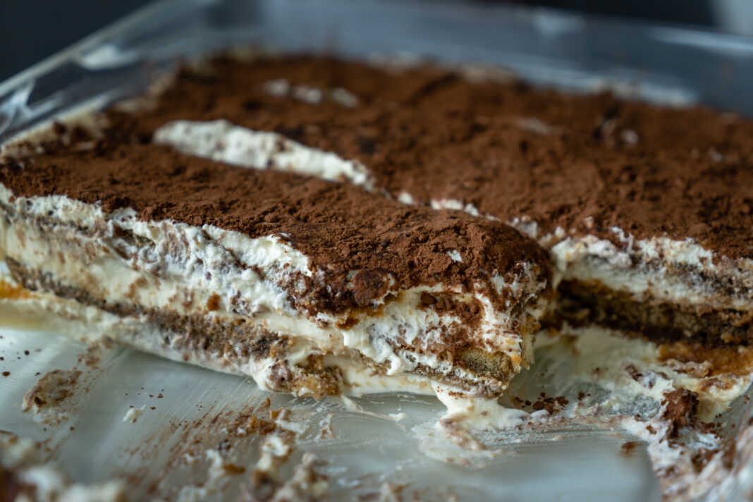 Συναρμολογήστε το τιραμισού σας σε 5 στρώσεις σε ορθογώνιο ταψί ή πυρεξ.
