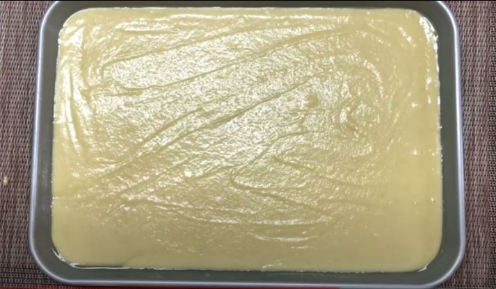 Σε ένα πυρέξ που το λαδώνουμε απλώνουμε το μείγμα