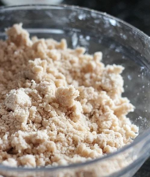 Προετοιμάστε την γέμιση / επικάλυψη συνδυάζοντας όλα τα υλικά μαζί τριβοντας τα με ένα πιρούνι μέχρι να σχηματιστεί ένα χοντρό ψίχουλο.