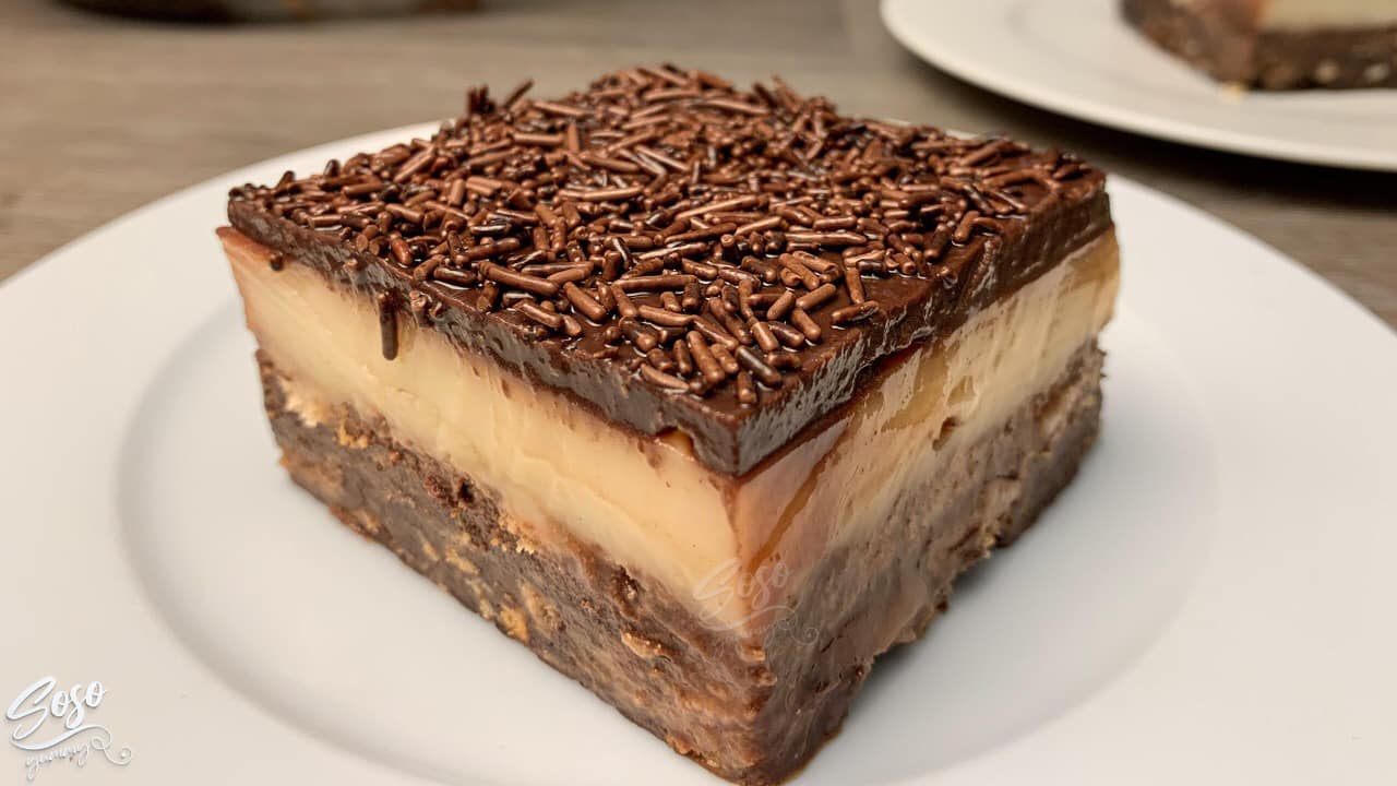 Βάζουμε σε μέτρια φωτιά και ανακατευουμε έως ότου πήξει η κρέμα μας. Εφόσον πηξει ρίχνουμε και τα κομμάτια σοκολάτας και συνεχίζουμε έως ότου γίνει μία πολυ πηχτή σοκολατένια κρέμα βγάζουμε το γλυκό μας από το ψυγείο αδειάζουμε την κρέμα σοκολάτας την ισιώνουμε τη σκεπάζουμε με μία μεμβράνη η οποία εφάπτεται πάνω στην κρέμα και τη βάζουμε στο ψυγείο περίπου για δύο ώρες να σφίξει