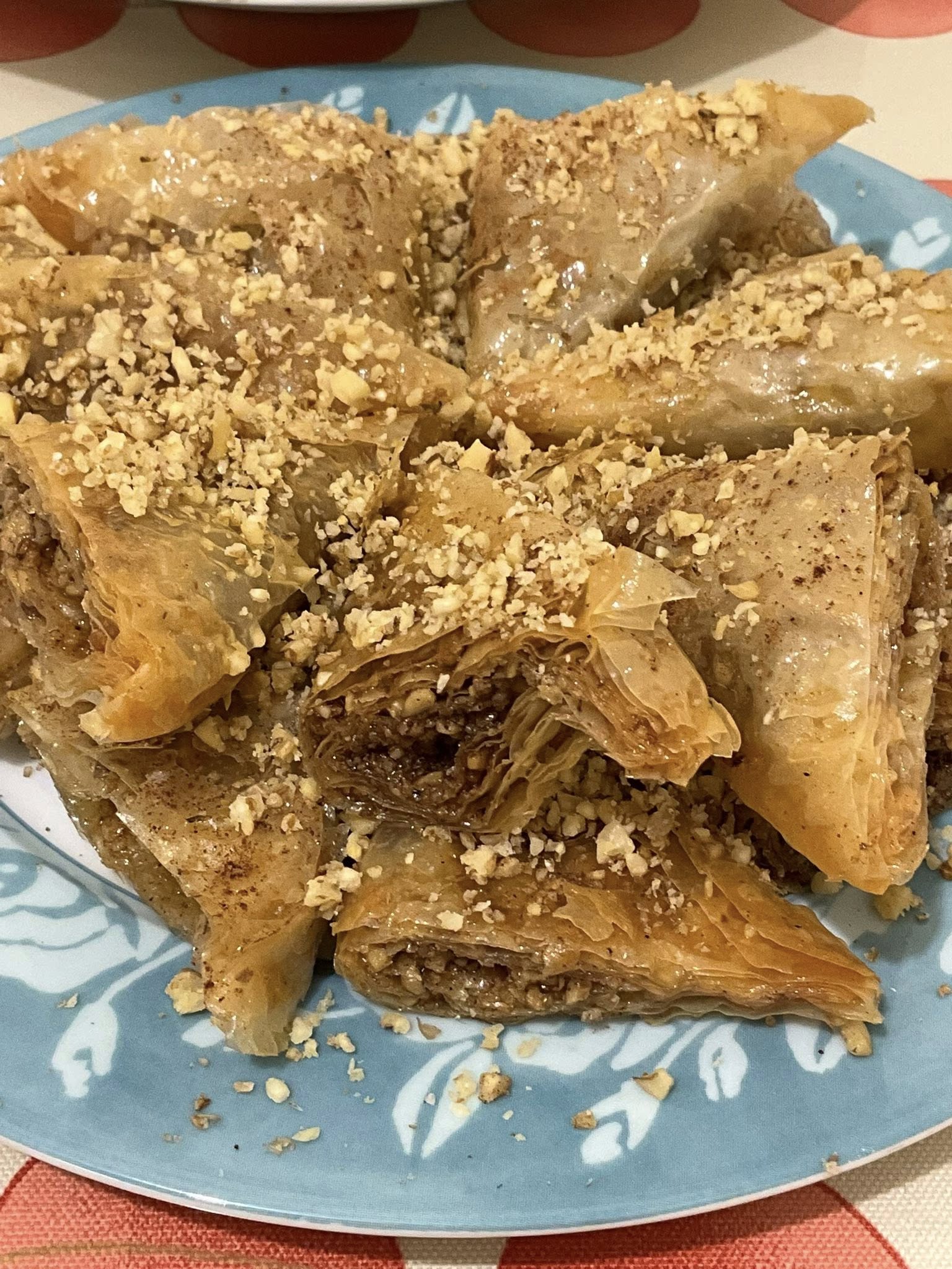 Σιρόπι: Τα τρίγωνα πρέπει να είναι κρύα και το σιρόπι ζεστό για τέλειο σιρόπιασμα χωρίς να μαλακώσει το φύλλο.