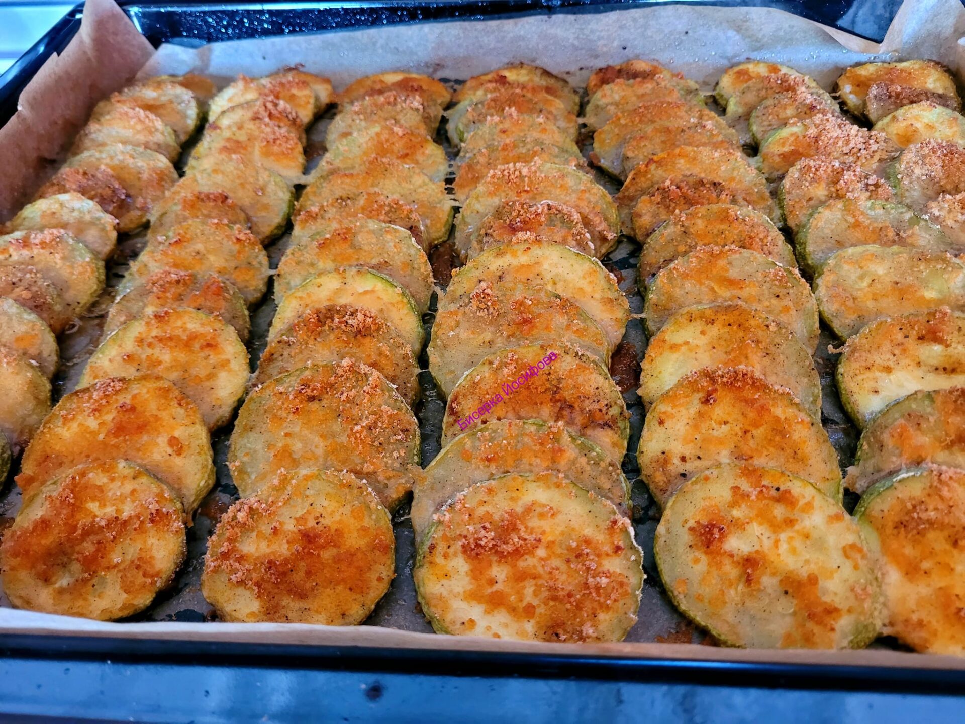 Αραδιάζουμε σε ταψί με λαδόκολλα, ραντίζουμε με λίγο λάδι, πασπαλίζουμε με την παρμεζάνα και ψήνουμε στους