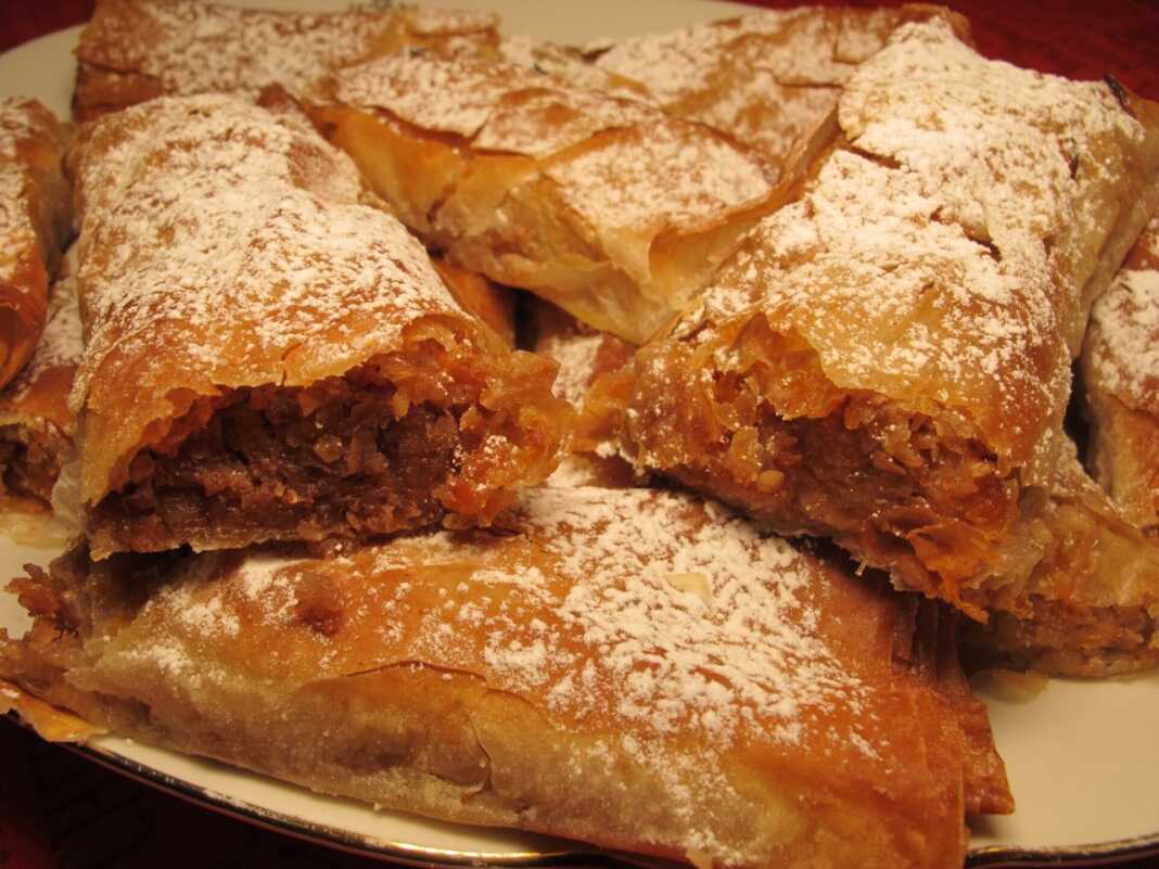 Ξεκινάμε και παίρνουμε το πρώτο φύλλο και το αλείφουμε με βούτυρο βάζουμε από πάνω το δεύτερο φύλλο το ραντίζουμε και αυτό με βούτυρο στη συνέχεια γυρίζουμε τα δυο βουτυρωμενα φύλλα με την την στενη πλευρα προς τα εμας, σκορπάμε επάνω στο φυλλο τριμμένη κολοκύθα μαζί με λιγη ζάχαρη και καρύδι