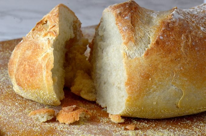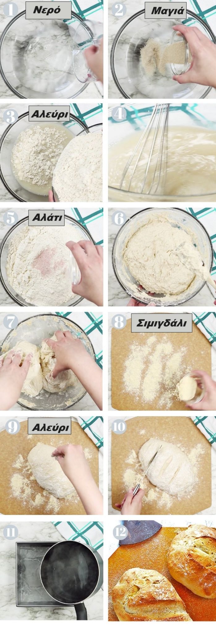 Χρησιμοποιήστε αλεύρι ειδικό για ψωμί (υψηλής πρωτεΐνης) για να πετύχετε την καλύτερη υφή και το πιο Τραγανό Σπιτικό Ψωμί. Δείτε κι άλλες συνταγές για ψωμί.