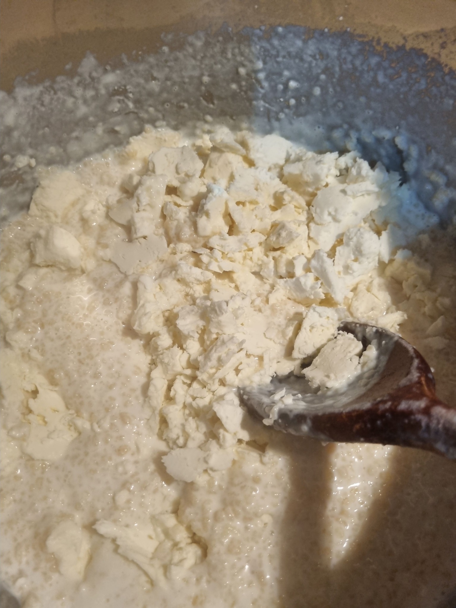- Ξεκινάμε βάζοντας νερό και γάλα σε μέτρια φωτιά, και προσθέτουμε τον τραχανά. Ανακατεύουμε συνεχώς και απαλά, ώστε ο τραχανάς να απορροφήσει τα υγρά και να δημιουργηθεί μια κρεμώδης υφή, χωρίς να κολλήσει στον πάτο της κατσαρόλας. Στη συνέχεια, ρίχνουμε βούτυρο και λίγο αλάτι, και αφήνουμε το μείγμα να κρυώσει ελαφρώς.