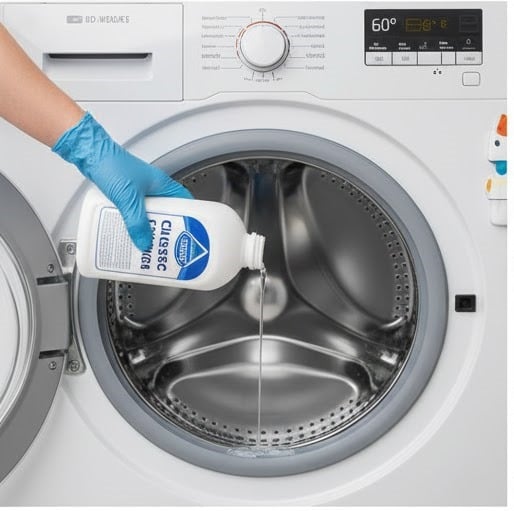 Αυτός είναι ο πιο κλασικός τρόπος για να καθαρίσετε τη συσκευή. Επιλέγουμε ένα πρόγραμμα στους 60 βαθμούς, χωρίς πρόπλυση, και αφήνουμε τον κάδο άδειο. Τη χλωρίνη μπορείτε να την τοποθετήσετε στην ειδική μπάλα που βάζουμε το υγρό απορρυπαντικό και να τη ρίξετε απευθείας μέσα στον κάδο. Αν πάλι δεν έχετε τέτοια μπάλα, μπορείτε να ρίξετε την κλασική χλωρίνη στο λάστιχο της πόρτας, εκεί που συνήθως μαζεύεται η περισσότερη βρωμιά, κλείνετε την πόρτα και ξεκινάτε την πλύση.