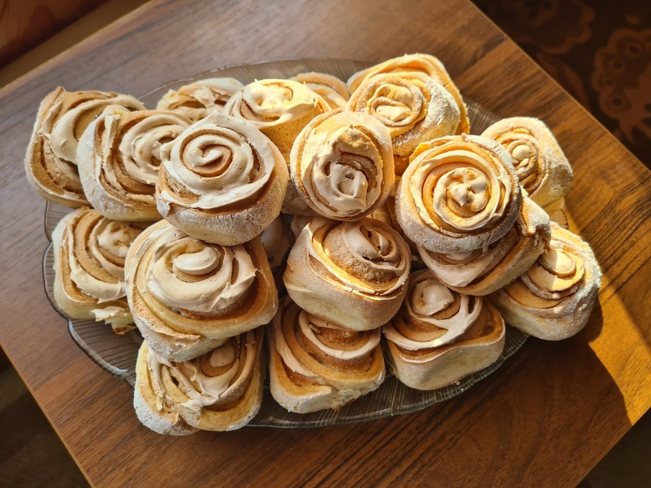 Επαναλαμβάνουμε την ίδια διαδικασία με το υπόλοιπο μισό της ζύμης και την υπόλοιπη μαρέγκα.