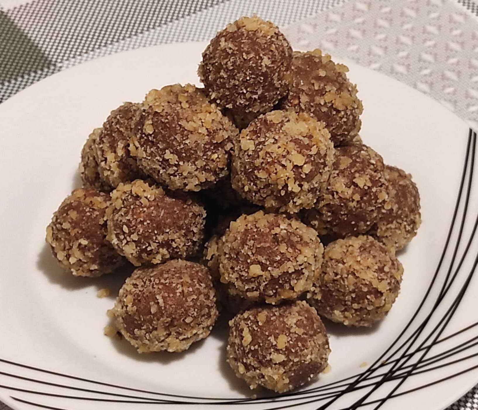 Μόλις το βγάλουμε πλάθουμε μικρά μπαλάκια και τα τυλίγουμε στο τριμμένο καρύδι η στην τρούφα.