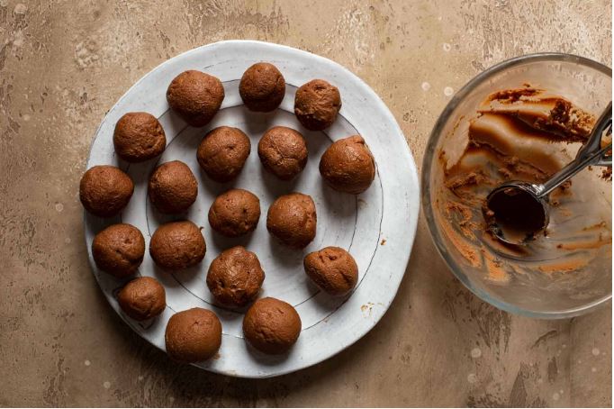 Πλάσε γρήγορα τις τρούφες σε μπάλες. Μην πλαθετε πολύ χρόνο αλλιώς οι τρούφες αρχίζουν να λιώνουν στα χέρια σας.