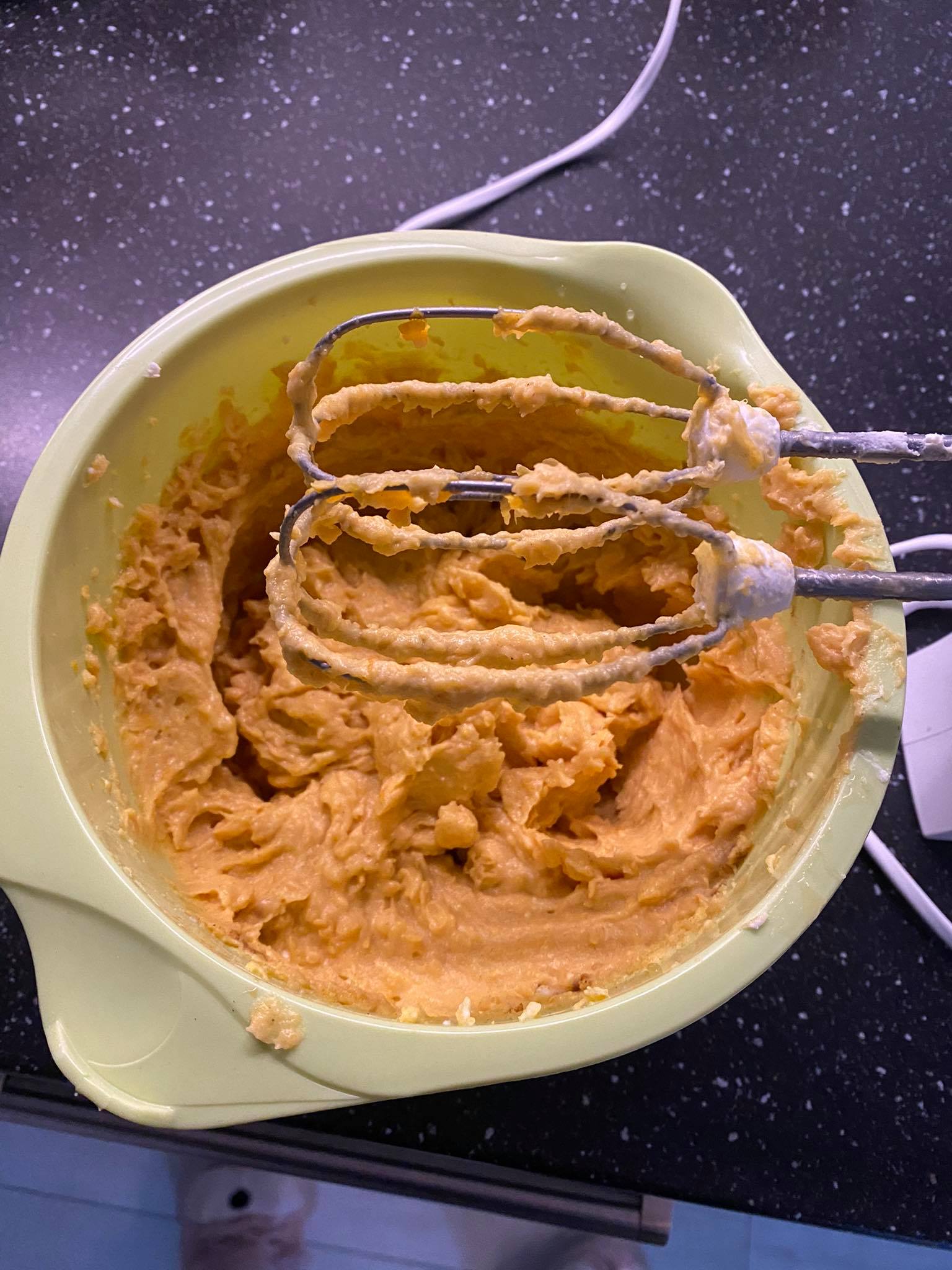 Ανακάτεψα όλα τα υλικά με το μίξερ, σε υψηλό βαθμό.