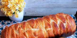 Μπλέκουμε τα δύο σχοινια σε κοτσιδα, τυλίγουμε σε ρολό σαλιγκάρι, όχι πολύ σφιχτό (η ζύμη να χωράει στη φόρμα)